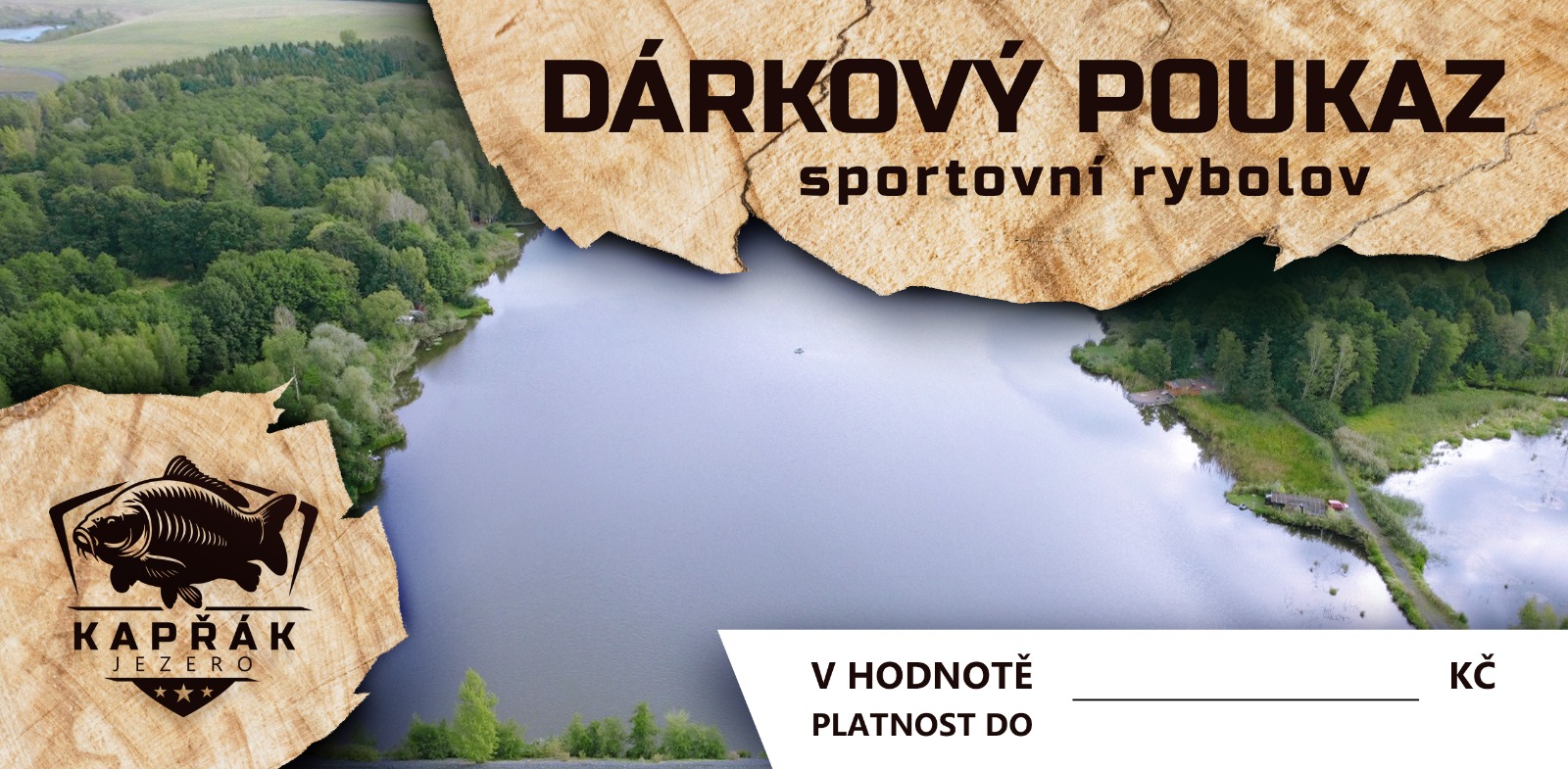 Hledáte perfektní dárek pro rybáře ve vašem okolí? Udělejte mu radost dárkovým poukazem na Jezero Kapřák. Nabízíme možnost vystavení poukazů v libovolné hodnotě, které lze využít na povolenky, ubytování v chatkách i další naše služby.