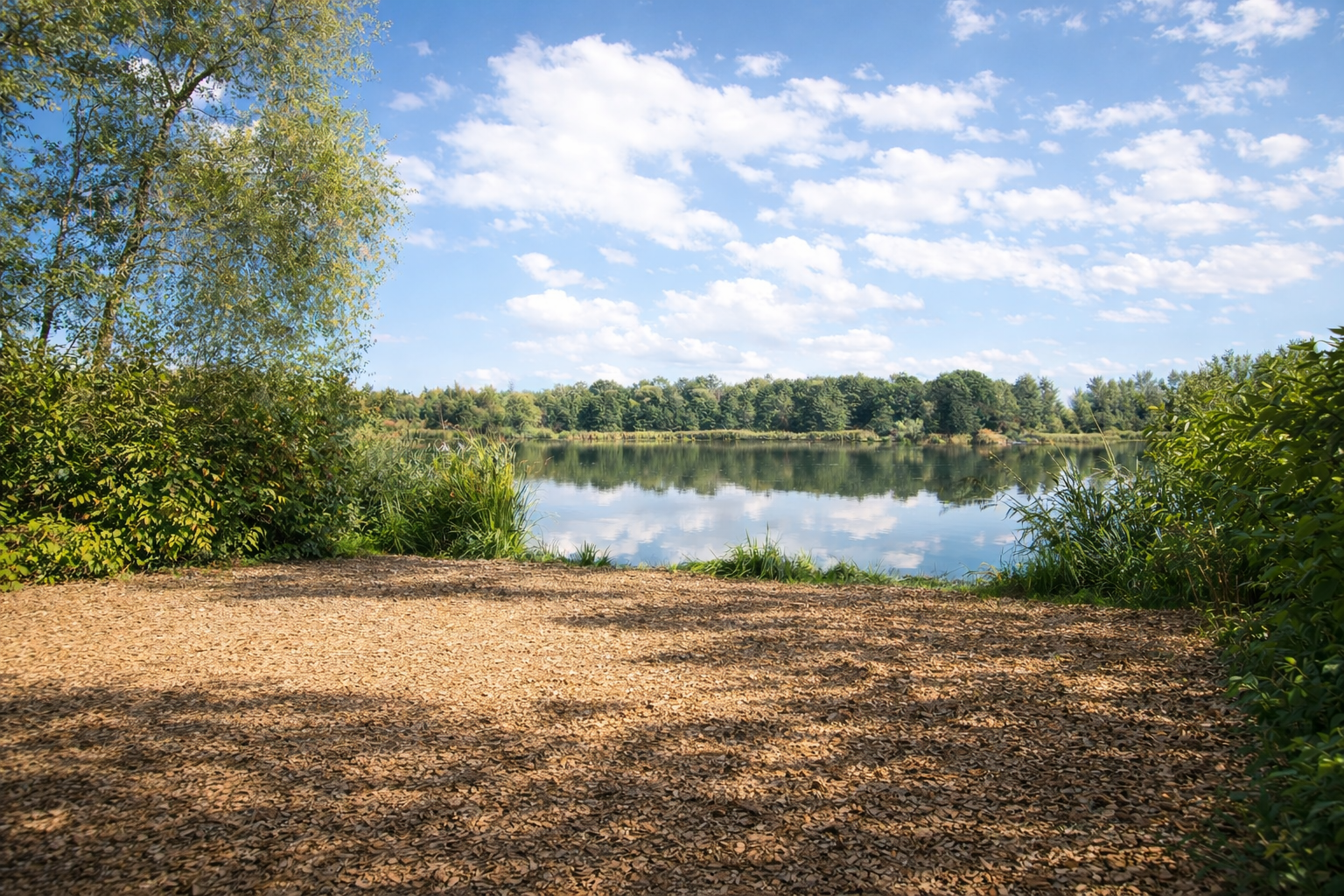 - Čistota za každého počasí: Zapomeňte na bláto. Celý břeh je zpevněn mulčovací kůrou. Navíc díky orientaci místa si užijete ranní kávu na slunci a odpolední zdolávání v příjemném stínu vzrostlých stromů.